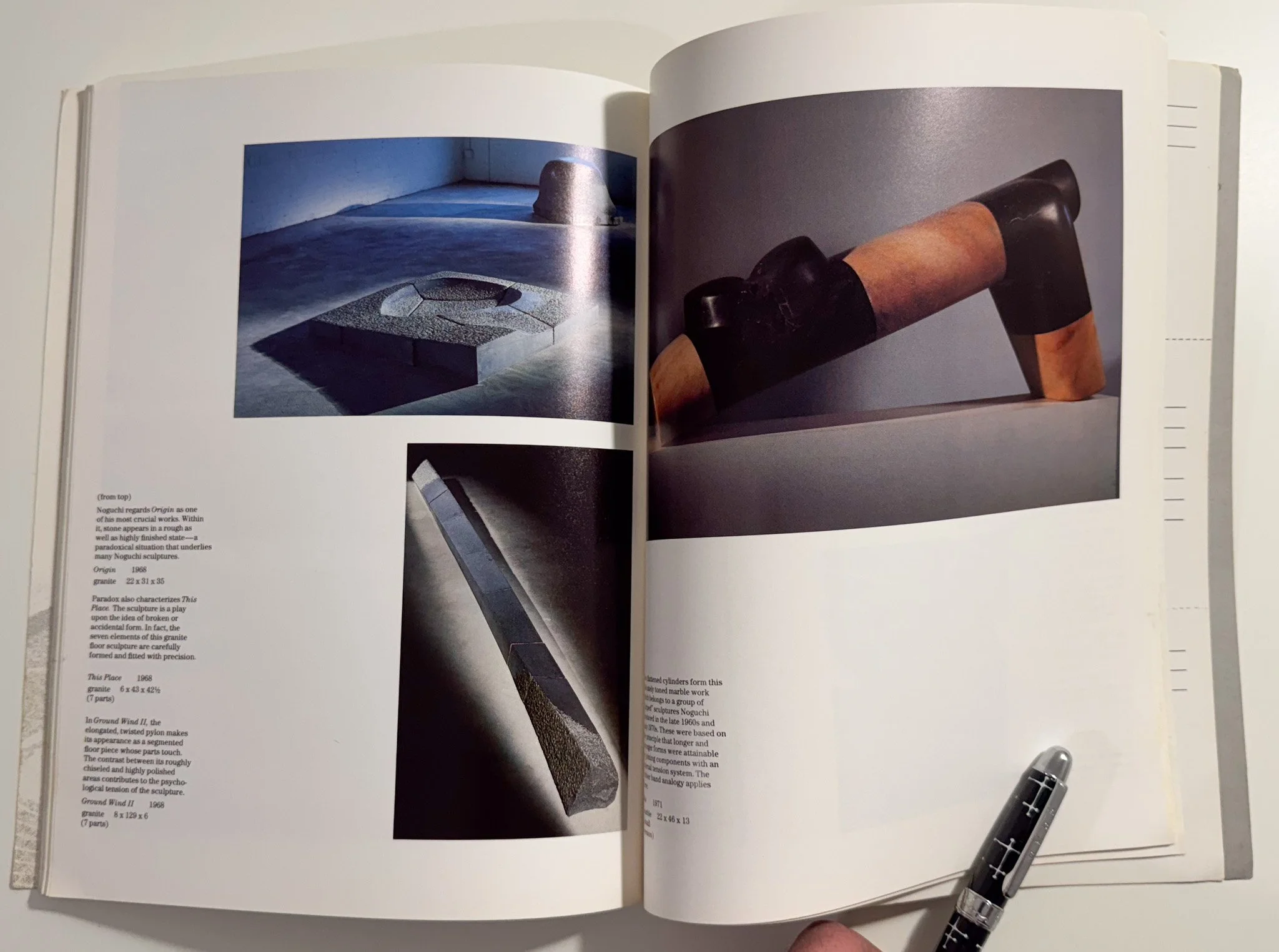Issue 106/107 of Design Quarterly, published by the Walker Art Center in 1978 with text by Martin Friedman. Dedicated to the exhibition Noguchi’s Imaginary Landscapes, held first at the Walker Art Center from 23 April to 18 June 1978, thence traveling to the Denver Art Museum, Cleveland Museum of Art, Detroit Institute of Arts, and the San Francisco Museum of Modern Art. 8.5” x 11”, pictorial wrappers with wrap-around images, approximately 100 pages with b/w and some color images throughout. Sections include A Primer of Sculptural Forms, Designs for the Stage, Unrealized Projects, Realized Projects, a Chronology, Bibliography, and a pull-out chart titled Noguchi’s Formal Vocabulary. A valuable contribution to the literature about Noguchi’s public-oriented work. Hinges weakened. Light bumping and rubbing to extremities.